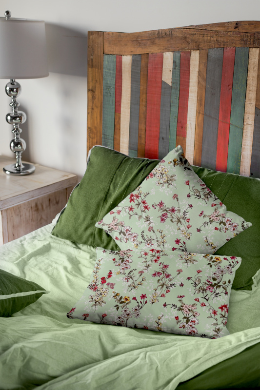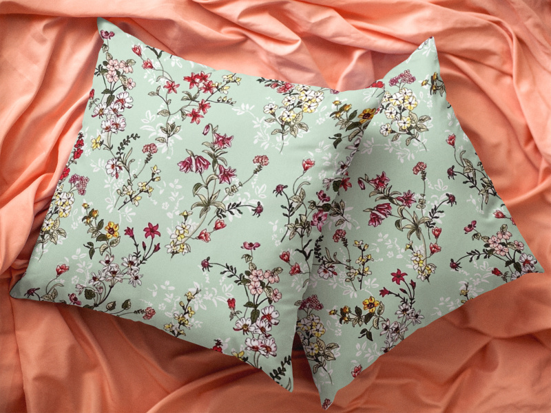 Ervi povlak na polštář Bavlněný - malované luční květiny na zelénem