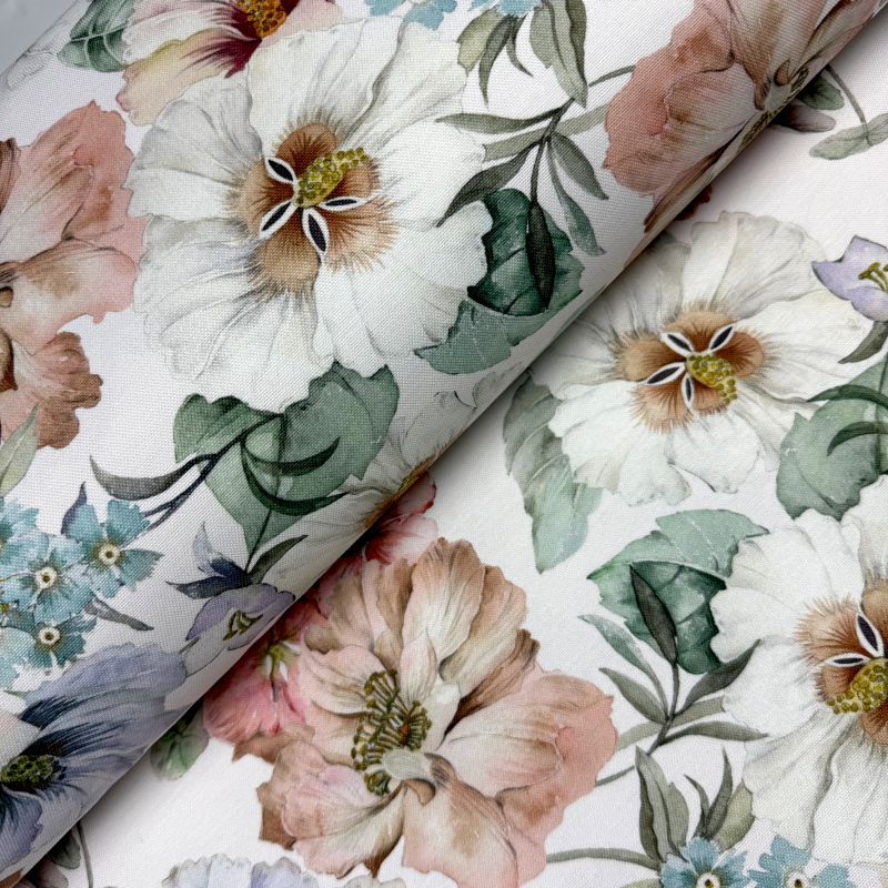 Jeho design zahrnuje jemné pastelové květinové motivy, například růže a hortenzie, v odstínech růžové, červené, modré a zelené, na světlém podkladu. Tyto motivy přinášejí romantický a svěží vzhled, který dodá eleganci a pohodu každé místnosti – ať už jde o obývací pokoj, ložnici či jiný prostor. Perfektní volba pro ty, kteří chtějí spojit estetiku s funkčností.