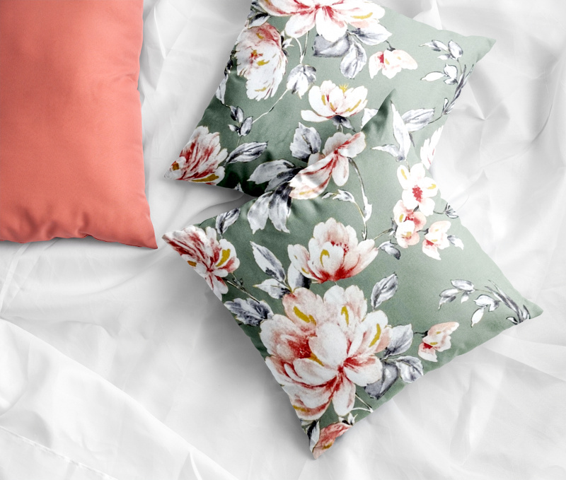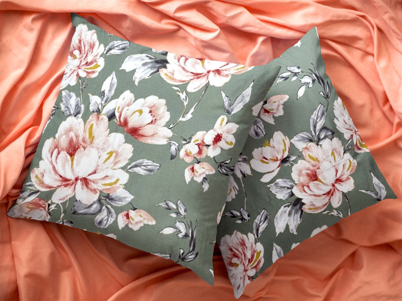 Ervi Saténový povlak na polštář DELUXE - pivoňky na zeleném