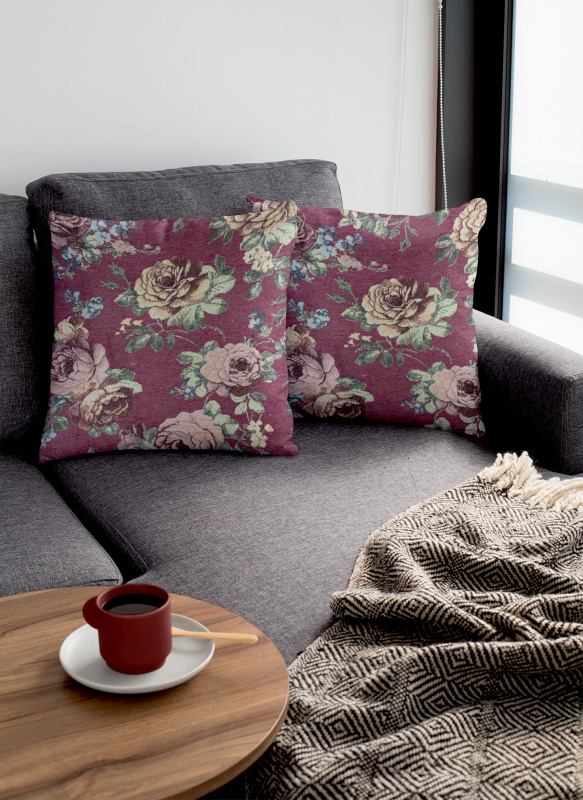 Ervi povlak na polštář gobelínový velké růže gold bordo
