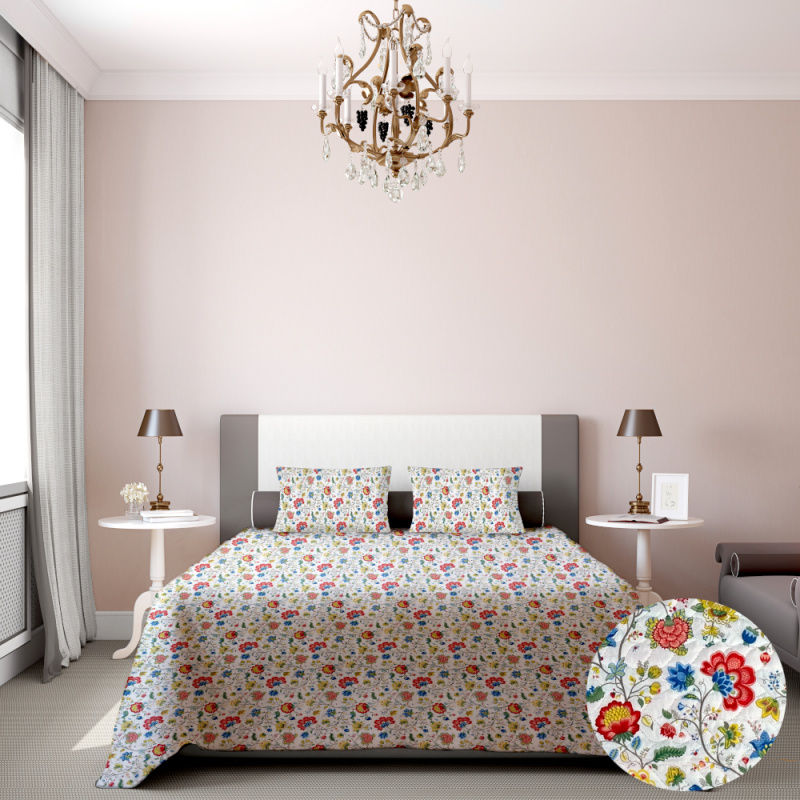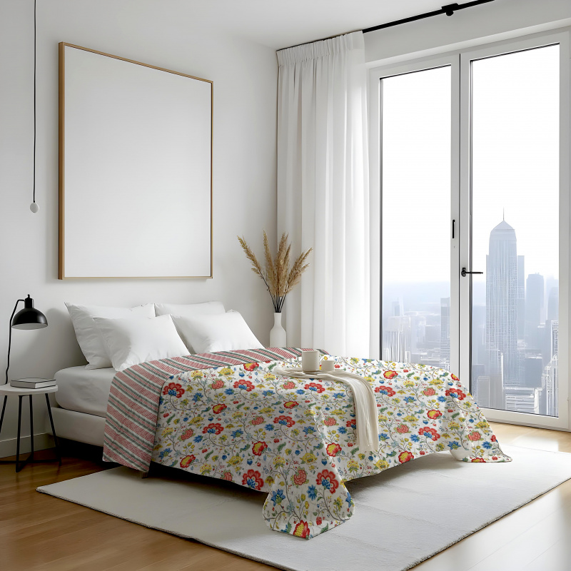 Oboustranný přehoz Colore Etno vnese do ložnice inspiraci etnickými motivy. Na jedné straně dominuje výrazný etno vzor s ornamenty, který působí živě, exoticky a plný energie. Druhá strana je střídmá a neutrální, což umožňuje vytvořit klidný a vyrovnaný vzhled lůžka. Díky oboustrannému provedení lze snadno měnit styl interiéru podle nálady – od výrazného dekorativního motivu po decentní a harmonický design. Přehoz zároveň slouží jako ochranná vrstva pro povrch postele a dodává prostoru osobitý charakter plný tepla a autentičnosti.
