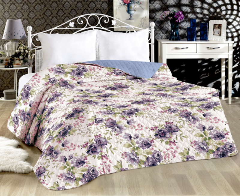 Přehoz oboustranný Colore - Fialové květy/modrý