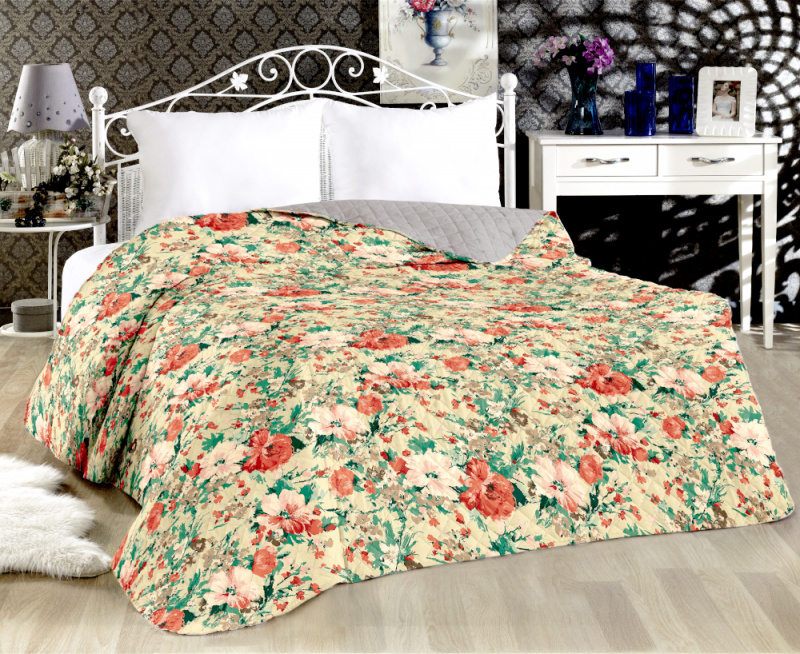 Přehoz oboustranný Colore - Květy /šedý