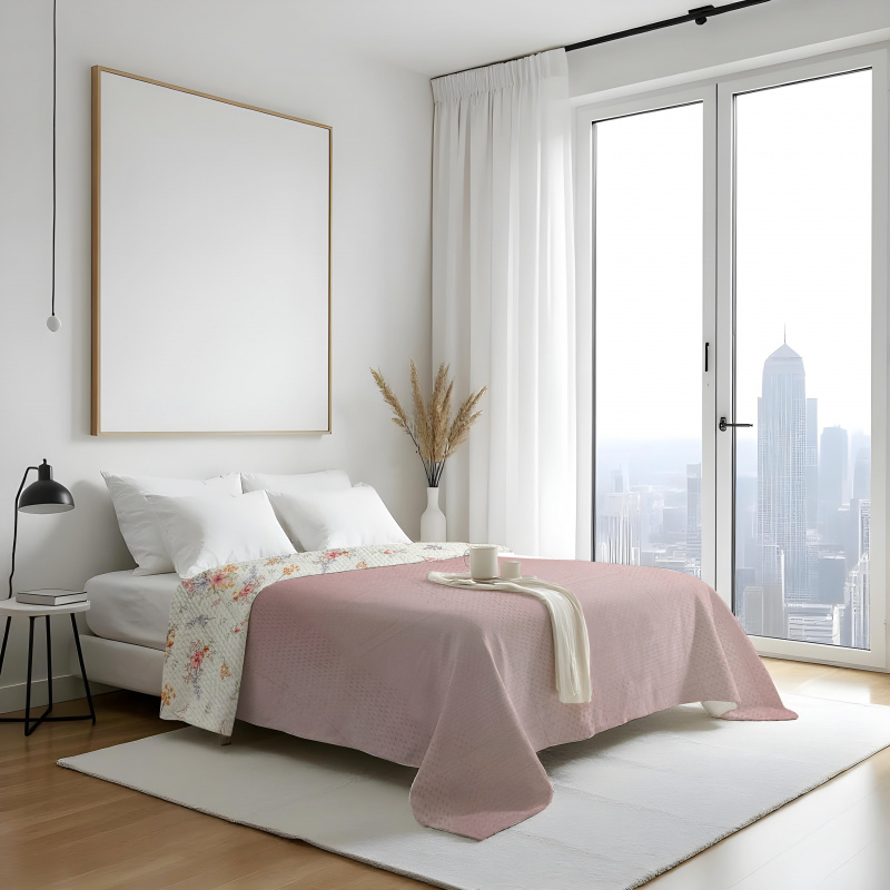 Přehoz oboustranný Colore - Růžový / Lilie
