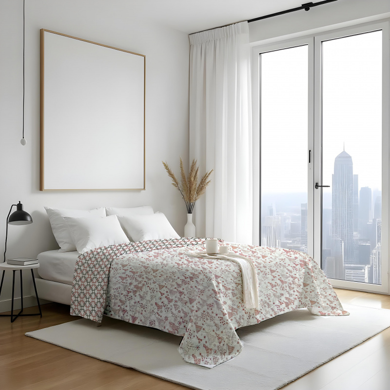 Dekorativní přehoz Colore Zima vnese do interiéru jemnou zimní atmosféru a vytvoří pocit útulnosti i elegance. Na jedné straně zaujme decentním motivem připomínajícím zasněžené vzory, které působí klidně a příjemně. Druhá strana je výrazně jednodušší, hladší a neutrální, díky čemuž snadno doplní nábytek bez rušivých detailů. Díky oboustrannému provedení můžete měnit vzhled místnosti podle nálady – volit výraznější dekorativní styl nebo střídmý, minimalistický vzhled. Přehoz slouží jako dekorace i praktická ochranná vrstva, která dodává prostoru teplo, harmonii a osobitý styl.