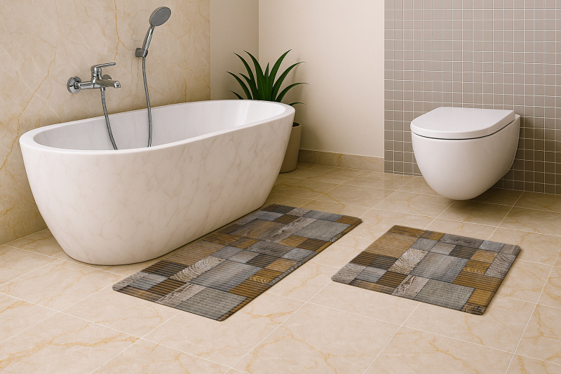 Sada koupelnových pěnových předložek D-112A - Dřevěná mozaika (různé velikosti)