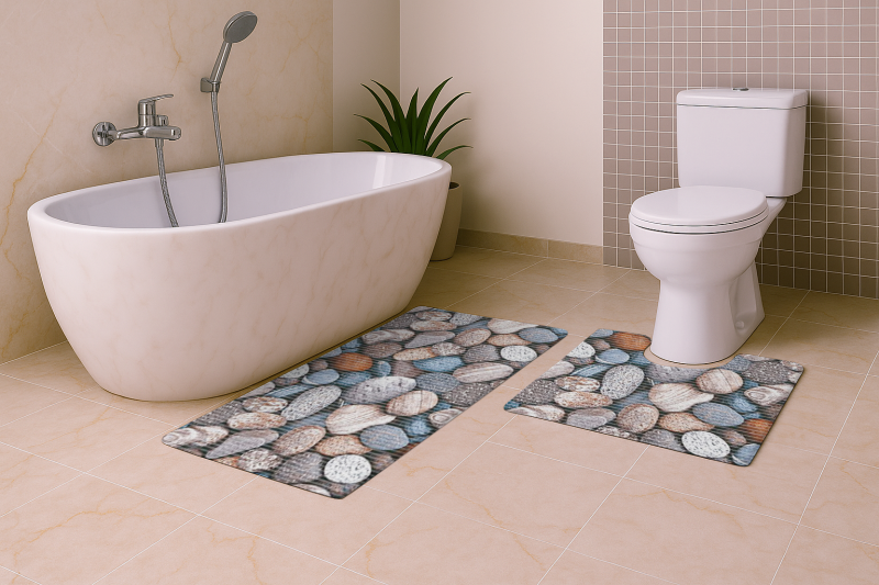 Sada koupelnových pěnových předložek s výkrojem u WC D-242A - Říční kameny (různé velikosti)