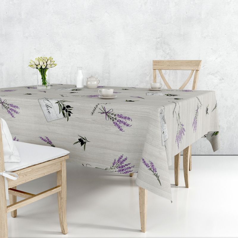 Omyvatelný PVC ubrus v šířce 140cm se vzorem levandule. Z rubové strany je ubrus opatřen textilní vrstvou, která jej zpevňuje a zároveň zabraňuje klouzání ubrusu po stole.