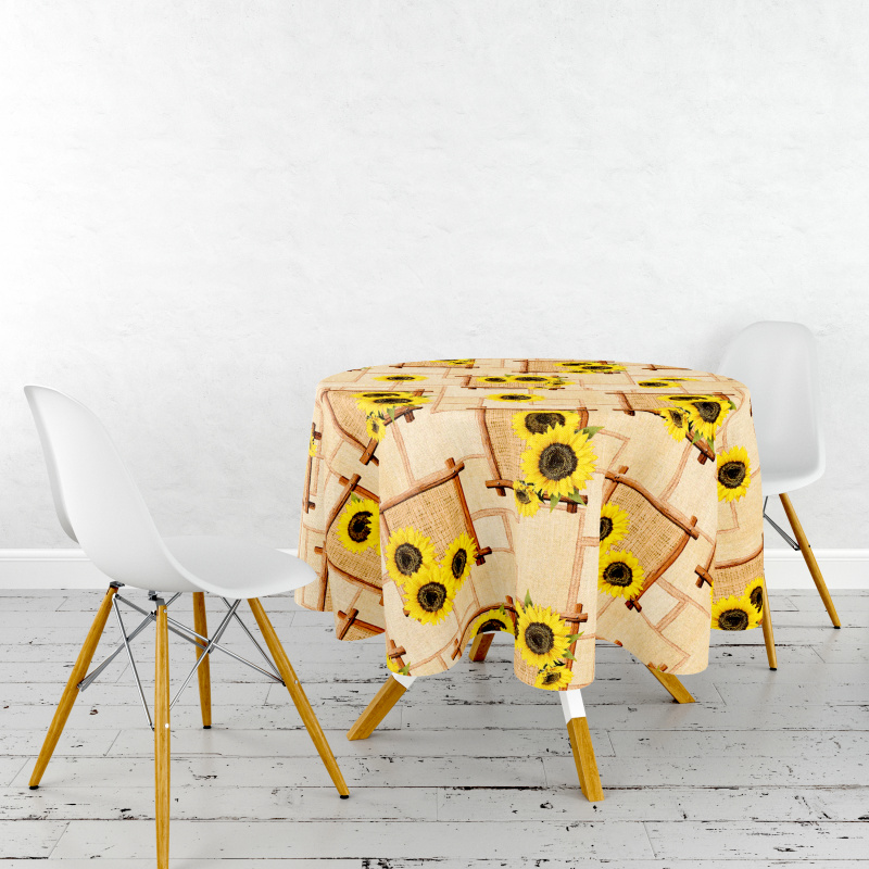 Ubrus PVC kulatý FL-1433 – Slunečnice na venkově (různé velikosti)