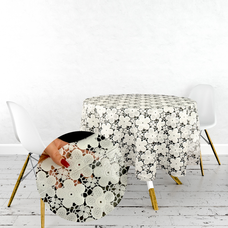 Elegantní ubrus s jemným květinovým vzorem v krajkovém provedení. Vzor připomíná ručně háčkované květy, které dodají vašemu stolu romantický a nadčasový vzhled. Skvělá volba pro slavnostní i každodenní příležitosti.