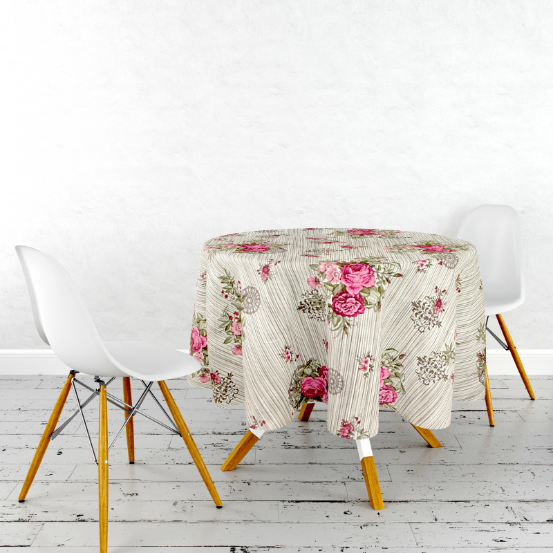 Ubrus PVC kulatý DC-6575D – Růžová zahrada v krajce (různé velikosti)