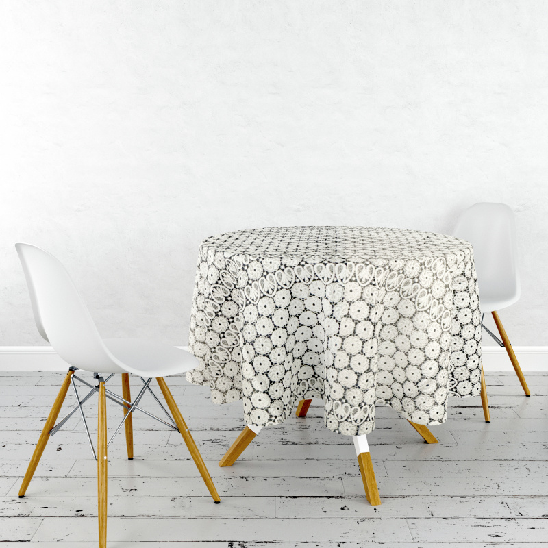Elegantní ubrus s jemným květinovým vzorem v krajkovém provedení. Vzor připomíná ručně háčkované květy, které dodají vašemu stolu romantický a nadčasový vzhled. Skvělá volba pro slavnostní i každodenní příležitosti.
