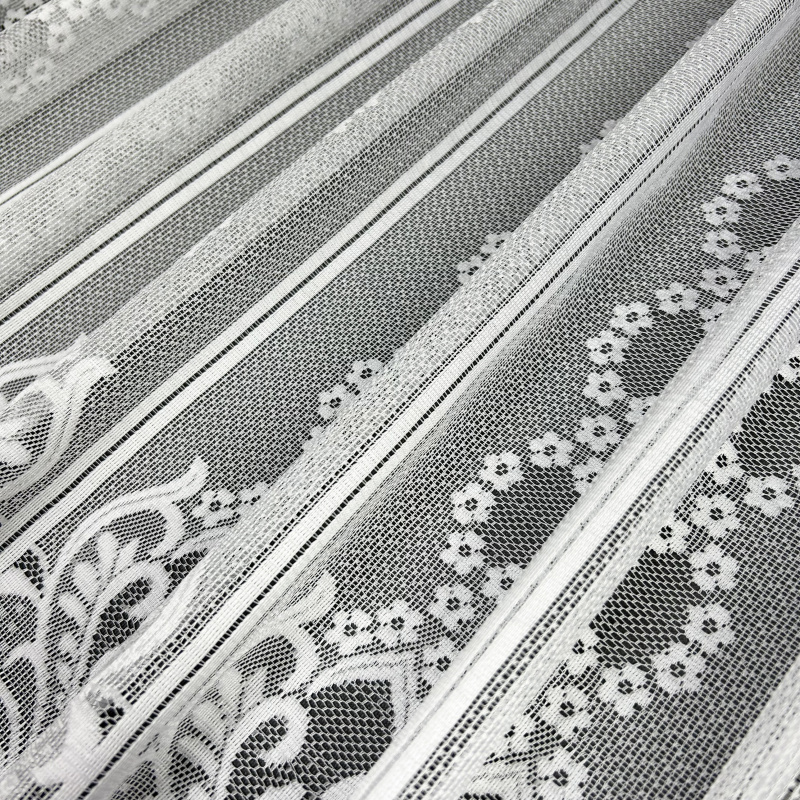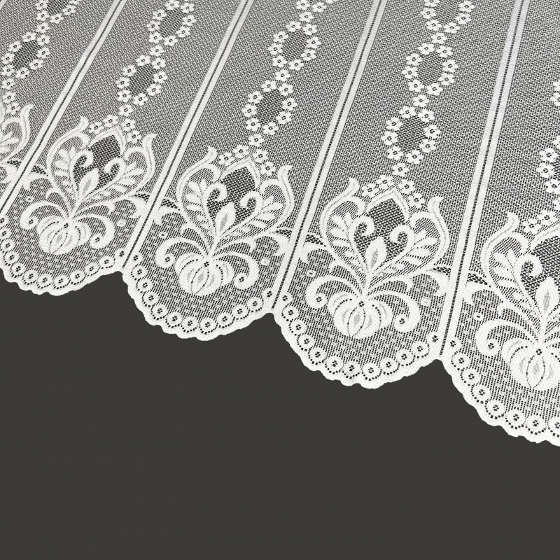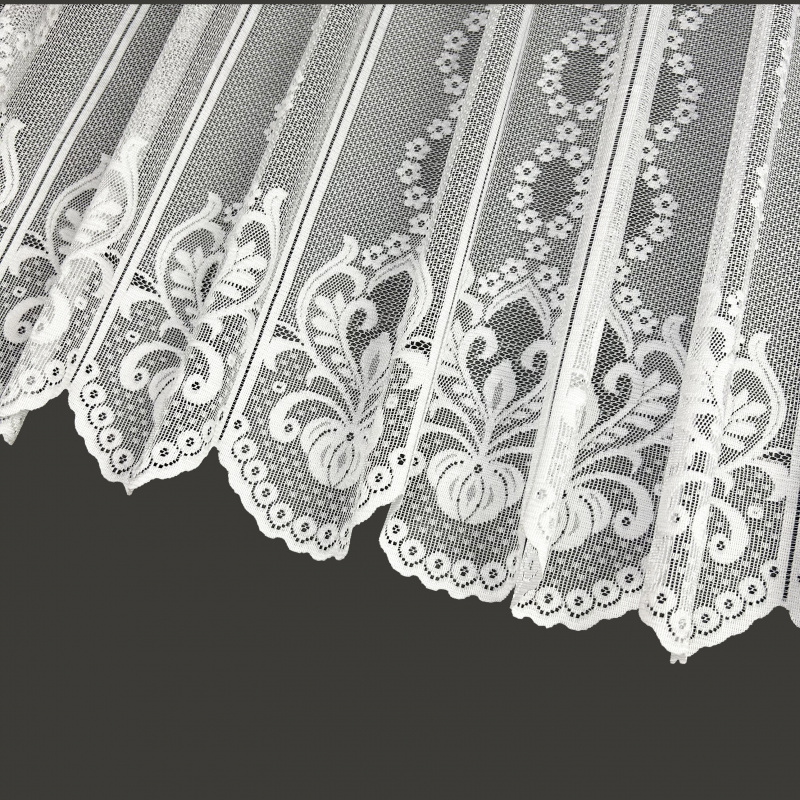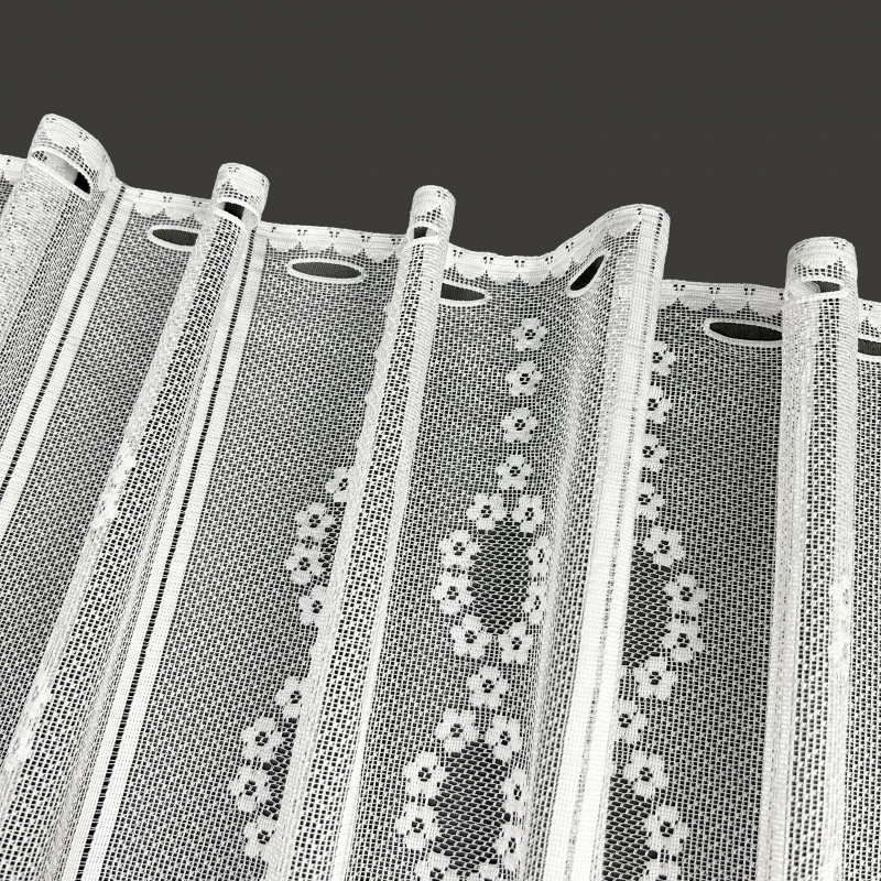 Vitrážová žakárová záclona v bílé barvě se vzorem.