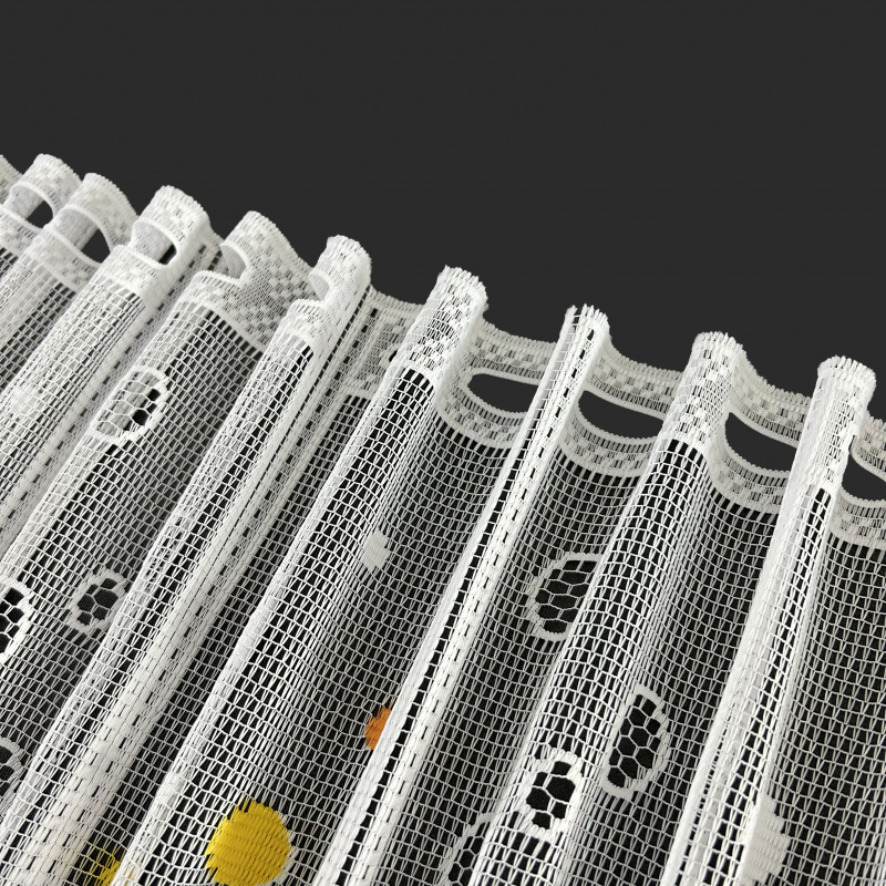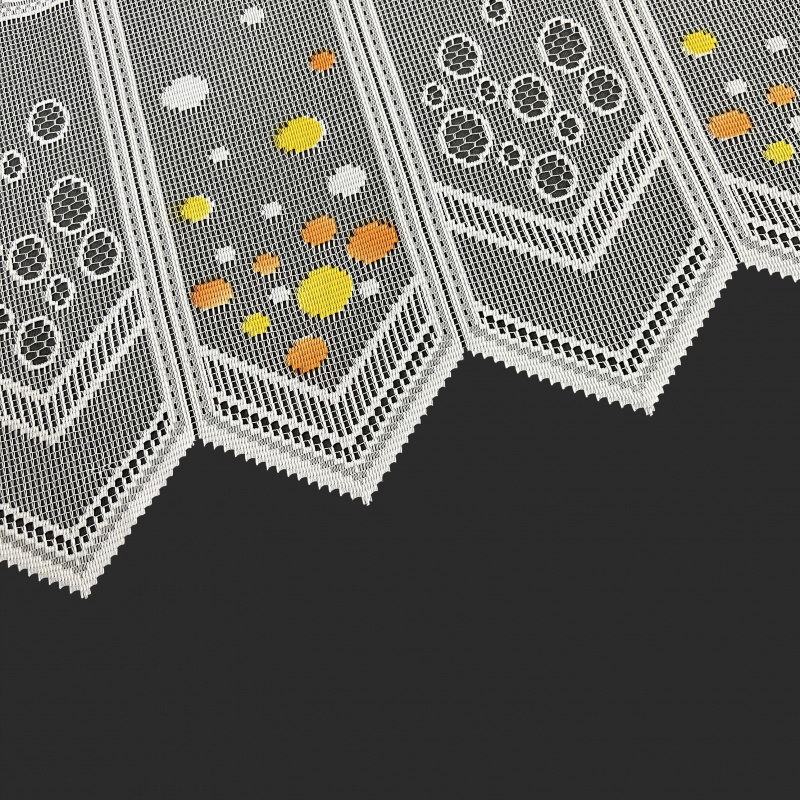 Vitrážová žakárová záclona v bílé barvě se vzorem.
