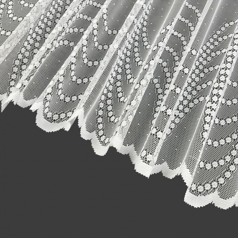 Vitrážová žakárová záclona v bílé barvě se vzorem.